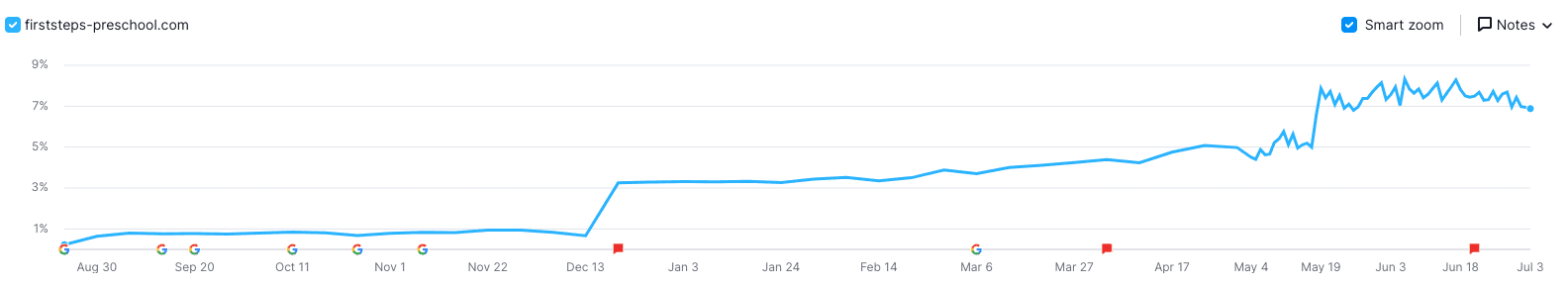 We recommended comprehensive SEO and PPC campaigns, with local components to each. First Steps’ SEO campaign consists of technical website optimization and maintenance, aggressive link building, and strategic content production.